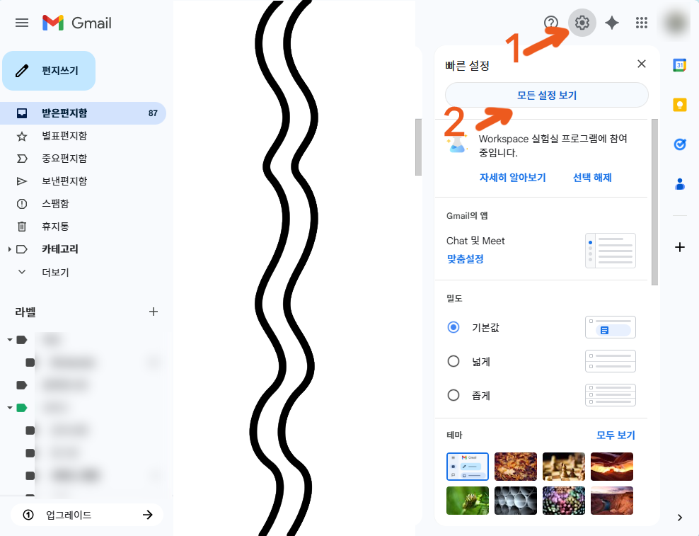 - Gmail 우측 상단 톱니바퀴 버튼 → “모든 설정 보기”를 눌러.