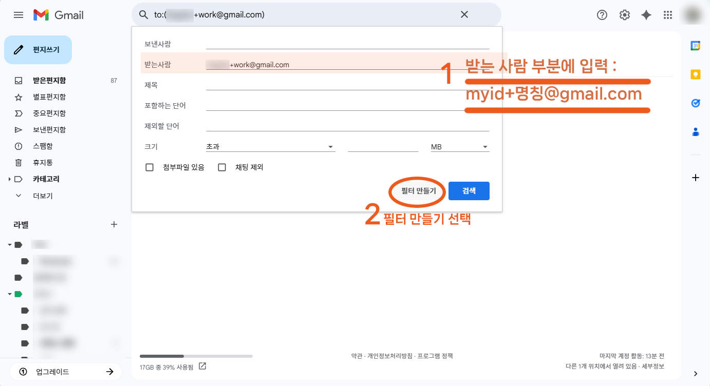 특정 플러스 주소로 온 메일을 자동 분류하는 방법(라벨, 편지함 등)