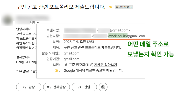 특정 플러스 주소로 보냈다는 것을 어떻게 메일함에서 알 수 있어?