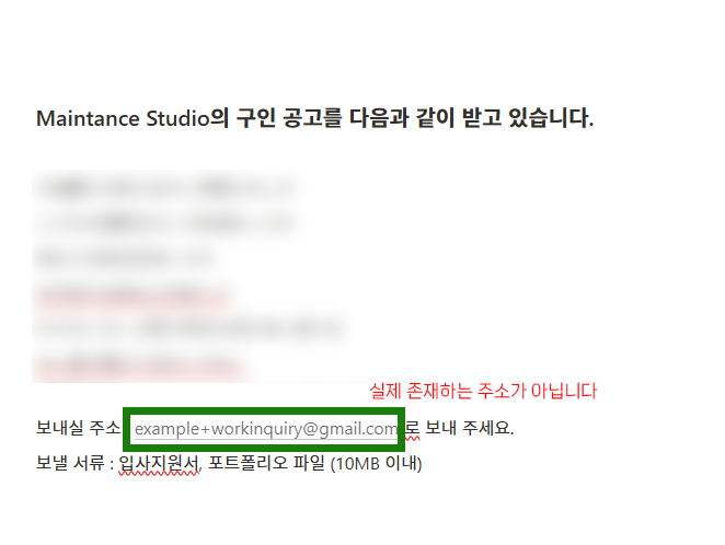 예를 들어, 구인 공고를 특정 라벨링으로 받아보고 싶을 경우, 보낼 메일 주소에 원하는 플러스 메일 네이밍을 제시하면 되겠지?