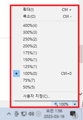 Ctrl과 키보드의 플러스(+), 마이너스(-)를 누르면서 조정하거나,