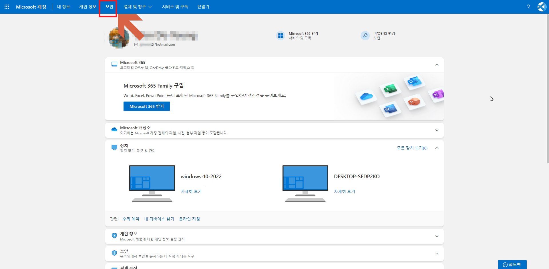 이 URL로 접속해도 됩니다. https://account.microsoft.com/